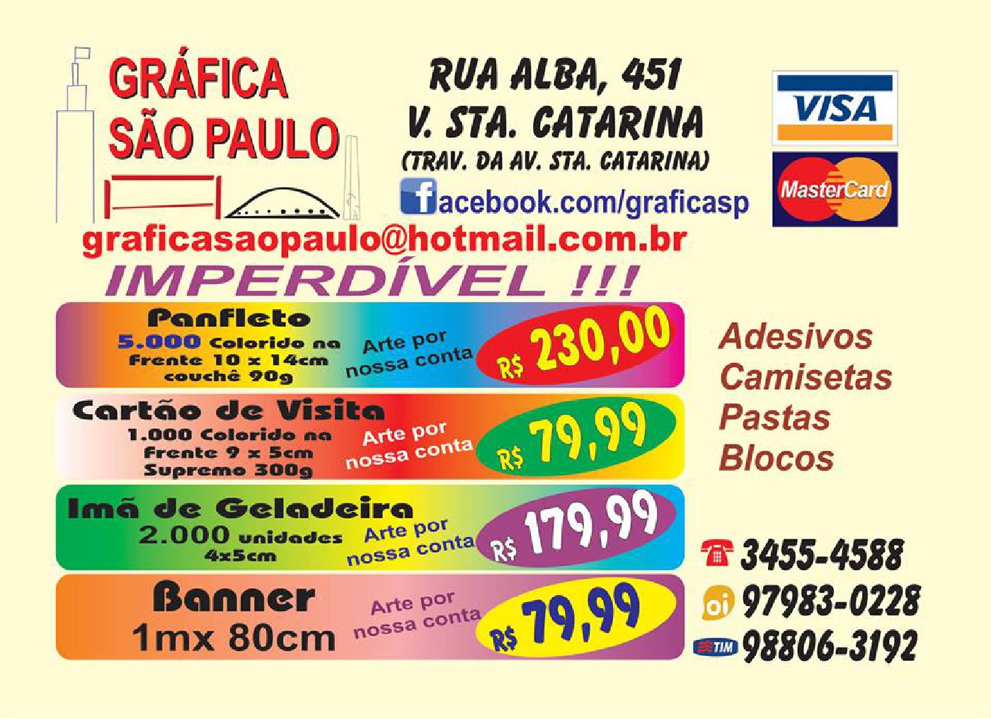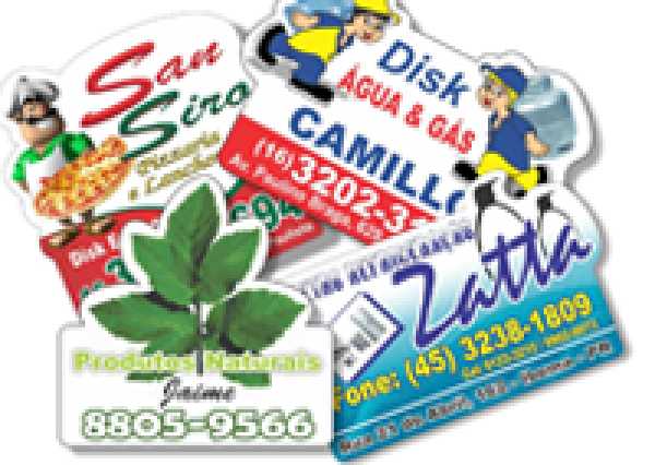 Cartões de visita, Panfletos, Banners, Etiquetas adesivas, Adesivos, Imã de geladeira, Cartazes, Pastas timbradas, Estampas em camisetas, Talões: de recibo, pedido, ordem de serviço, orçamentos, etc.